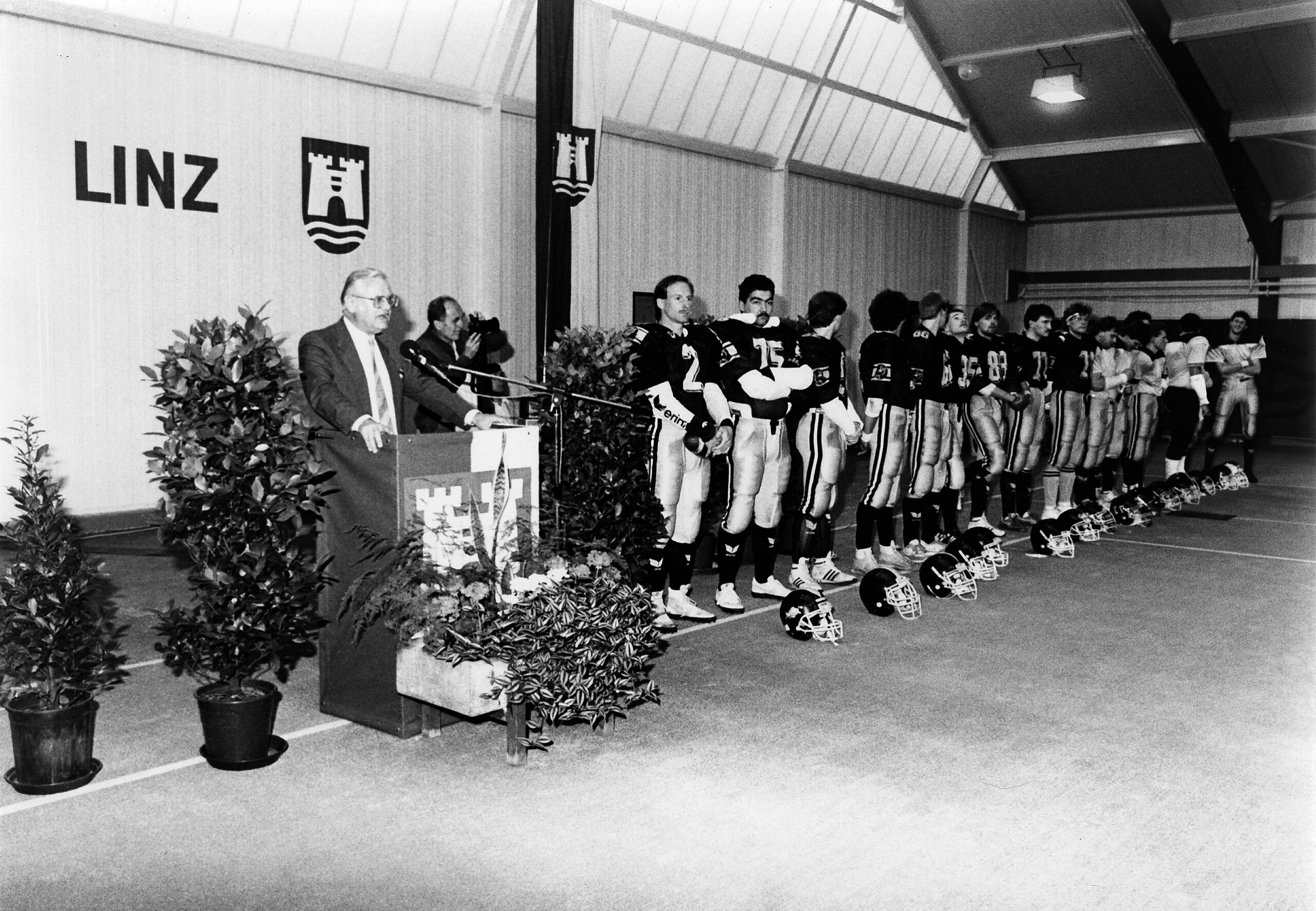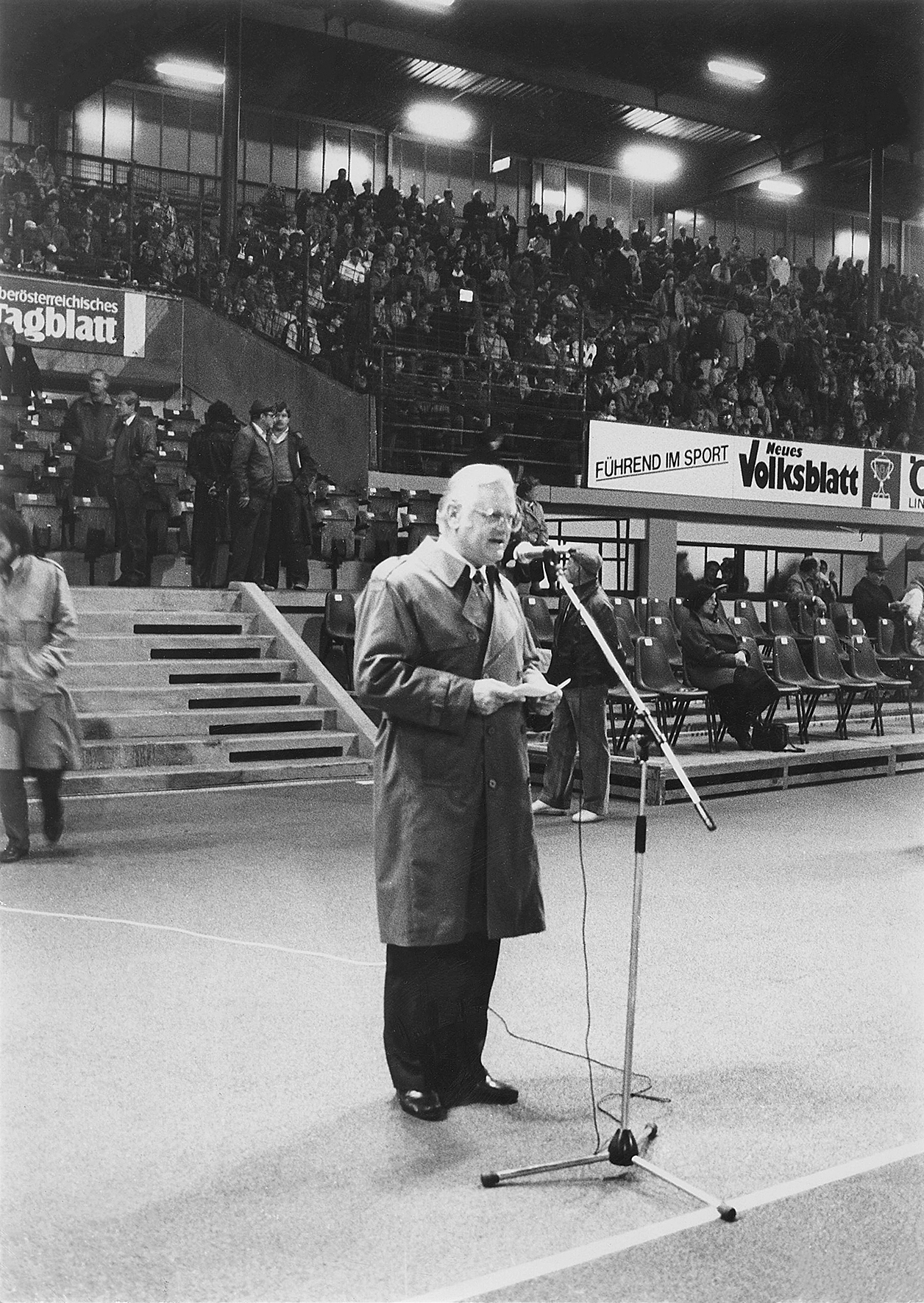 und wird als bislang letzter Linzer Klub österreichischer Fußballmeister. Im Europapokal der Landesmeister trifft man auf den FC Barcelona. Vor 25.000 Zuschauer*innen gelingt den Blau-Weißen im Heimspiel auf der Linzer Gugl ein beachtliches 0:0-Unentschieden. Im Rückspiel setzt es eine klare 0:5-Niederlage gegen das Star-Ensemble der Katalanen.